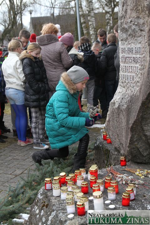 Džūkstes pamatskolas kolektīvs ceturtdien, otrās mācību stundas laikā, devās pie pieminekļa sava pagasta represētajiem, lai iedegtu svecītes un noliektu galvas, pieminot pirms 67 gadiem notikušo traģēdiju. Pasākumu vadīja pagasta kultūras dzīves organizatore Aija Ektermane.