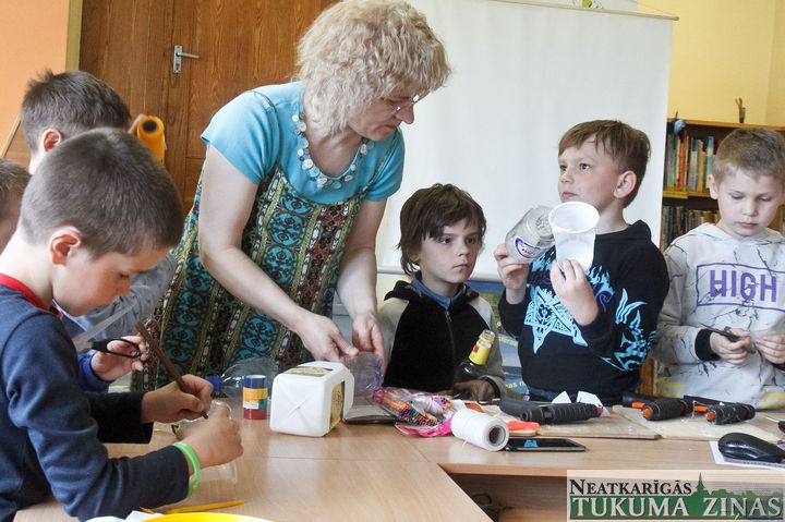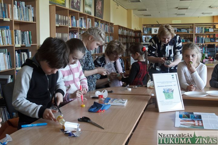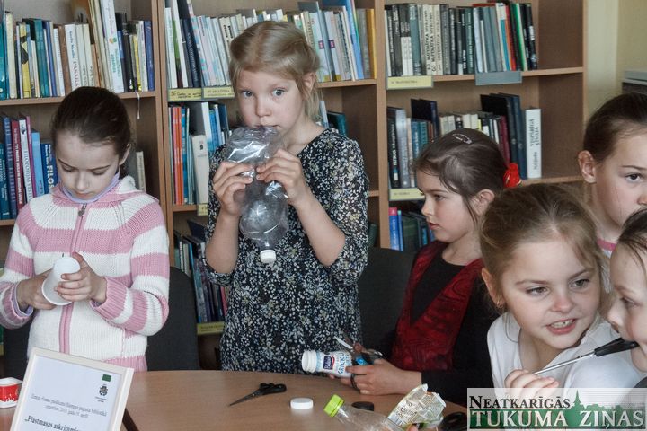 Zemgales vidusskolas pirmklasnieki 19. saprīlī uz Slampes pagasta bibliotēku devās, apbruņojušies ar dažādiem… sadzīves atkritumiem. Dažiem līdzi tukšas PET pudeles, citiem – krējuma turziņas vai vienreizlietojamās glāzītes un šķīvīši. Izrādās, bērni ir apņēmības pilni apgūt visu, kas nepieciešams, lai nosargātu lielāko dārgumu – mūsu Zemi un tās dzīvo dabu. Kā to darīt, bērniem pastāstīja un vēlāk arī parādīja Ķemeru nacionālā parka dabas izglītības centra «Meža māja» speciāliste Aija Balandiņa.