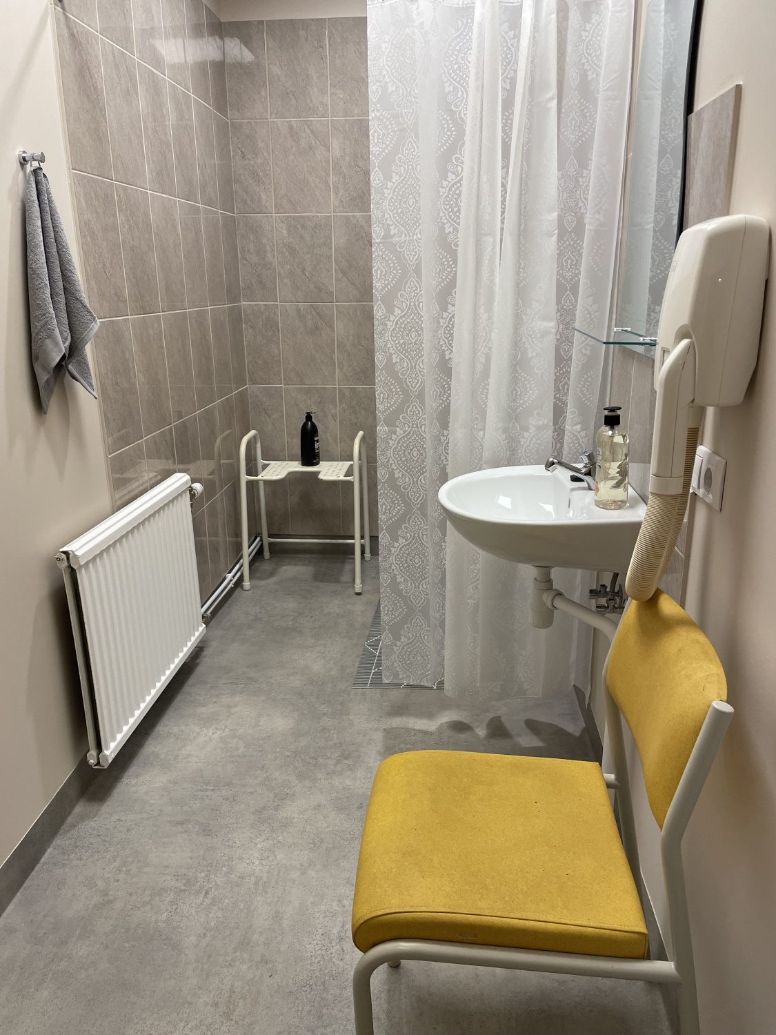 Higiēnas telpām atvēlēts viens mājas spārns ar atsevišķu ieeju, kur nule kā beidzies remonts un radīta ērta vieta, kur nomazgāties.