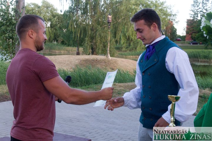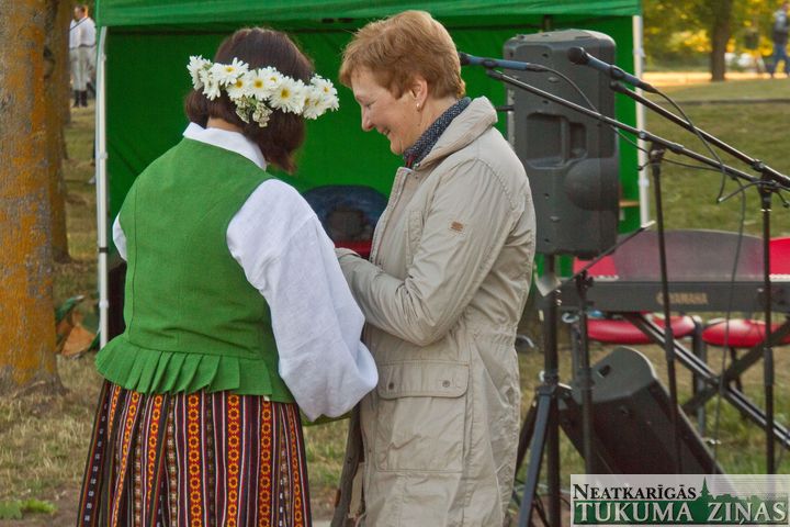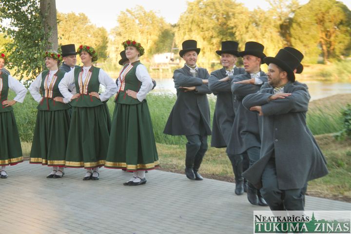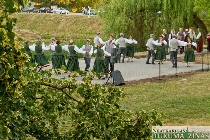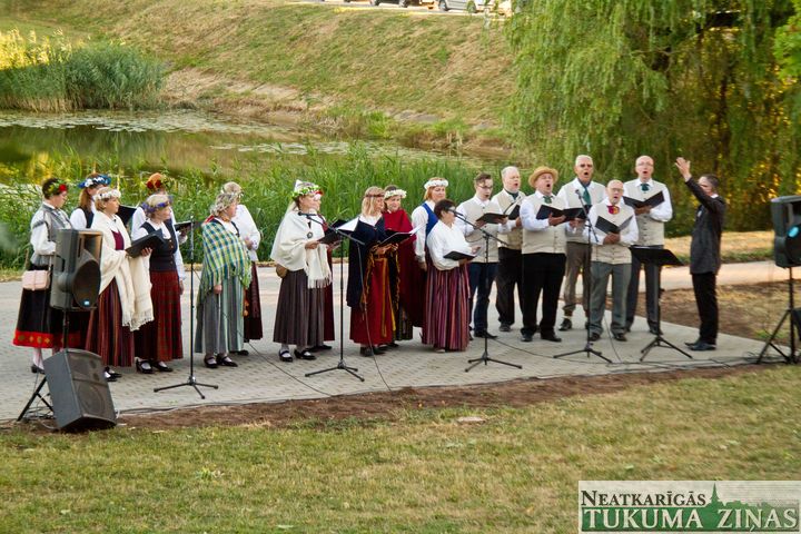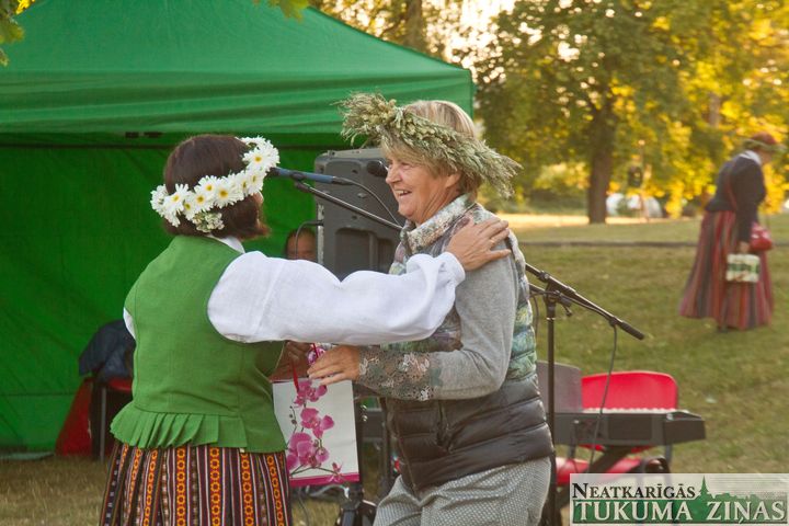 Bet citādā ielīgošana ar to vēl nebeidzās. Iesvētījuši jauno parka plāksni ar folkloras kopas «Pūrs» stiprajām dziesmām, līgotāji devās uz kultūras nama pusi, lai noskatītos svētku koncertu un suminātu labākos Slampes un Džūkstes pagasta sportistus un pašdarbniekus.