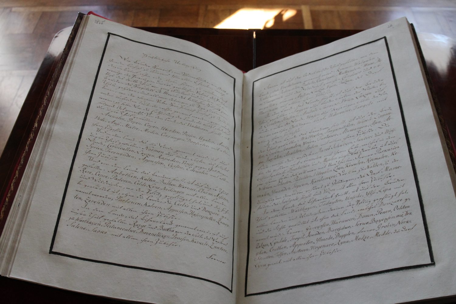 Kā vēl pirms svinīgā notikuma vēstīja Tukuma pils torņa muzeja vadītājs Alfrēds Moseičuks, svinīgās sēdes laikā Durbes pilī un no 5. aprīļa Tukuma Pils tornī, izstādē «Hercogistes laikazīmes Tukumā», apskatei būs pieejams Latvijas Valsts vēstures arhīvā glabātais 1253. gada 4. aprīļa Kursas sadalīšanas līguma noraksts. A. Moseičuks: ”Tukuma Pils torņa apmeklētājiem radusies vēl nebijusi iespēja ieraudzīt vienu no J. K. Broces retu dokumentu norakstu apkopojumiem 136 lapu apmērā, kurā atrodams arī Tukuma un visas Kurzemes vēstures izpētei svarīgais 13. gadsimta vidusdaļas līguma noraksts, ko Kēnigsbergā, visticamāk, norakstījis Ernsts Hennigs, bet J. K. Broce to skaisti ierakstījis grāmatā, sniedzot savus paskaidrojumus. Līgums ir vienīgais 13. gadsimtā Latvijas teritorijā rakstītais dokuments, kurā atrodams tik liels Latvijas apdzīvoto vietu un ģeogrāfisko nosaukumu skaits – 150 vietvārdi. 1807. gada decembrī Kuldīgas apriņķa skolas skolotājs Ernsts Hennigs, landrāts grāfs fon Mellins un J. K. Broce izteica priekšlikumu rezidējošajam landrātam, baronam Vilhelmam Frīdriham fon Ungernam-Šternbergam (1752-1832) nokopēt Vācu ordeņa arhīvā Kēnigsbergā esošos dokumentus. Sākot ar 1809. gadu, iesākās apjomīgs darbs pie Vidzemes, Kurzemes un Igaunijas seno dokumentu kopēšanas Kēnigsbergas Slepenajā arhīvā un karaliskajā bibliotēkā. Tā kā J. K. Broce sava vecuma un amata dēļ nevarēja doties uz Kēnigsbergu, tad to veica E. Hennigs. Tomēr J. K. Broce, dzīvojot Rīgā, no 1809.-1816. gadam strādāja ar Kēnigsbergas Slepenā valsts arhīvā atrasto Livonijas laika dokumentu un manuskriptu norakstiem. Viņš ar apbrīnojamu precizitāti izgatavoja šo reto rokrakstu kopijas, rediģējot, papildinot E. Henniga sniegto informāciju un pievienojot savus komentārus.