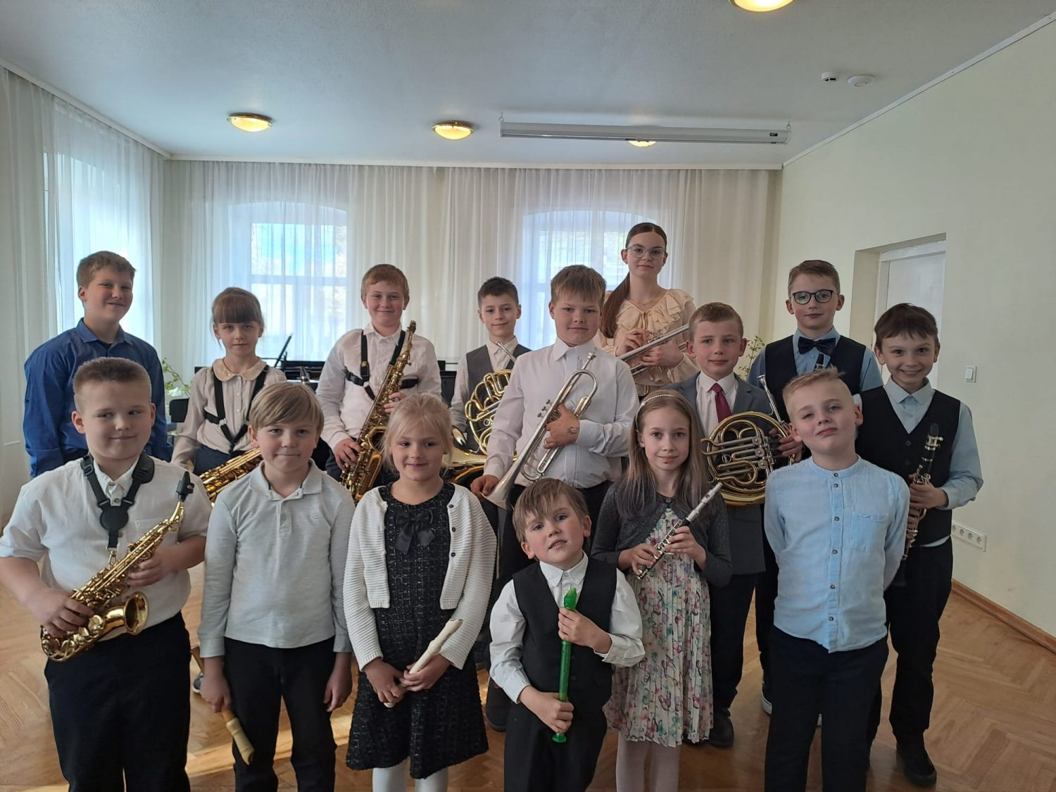 25.aprīļa vakarā 15 Tukuma Mūzikas skolas pūšaminstrumentu un sitaminstrumentu klases pirmklasnieki saviem vecākiem un draugiem rādija, ko iemācījušies pirmajā apmācības gadā.