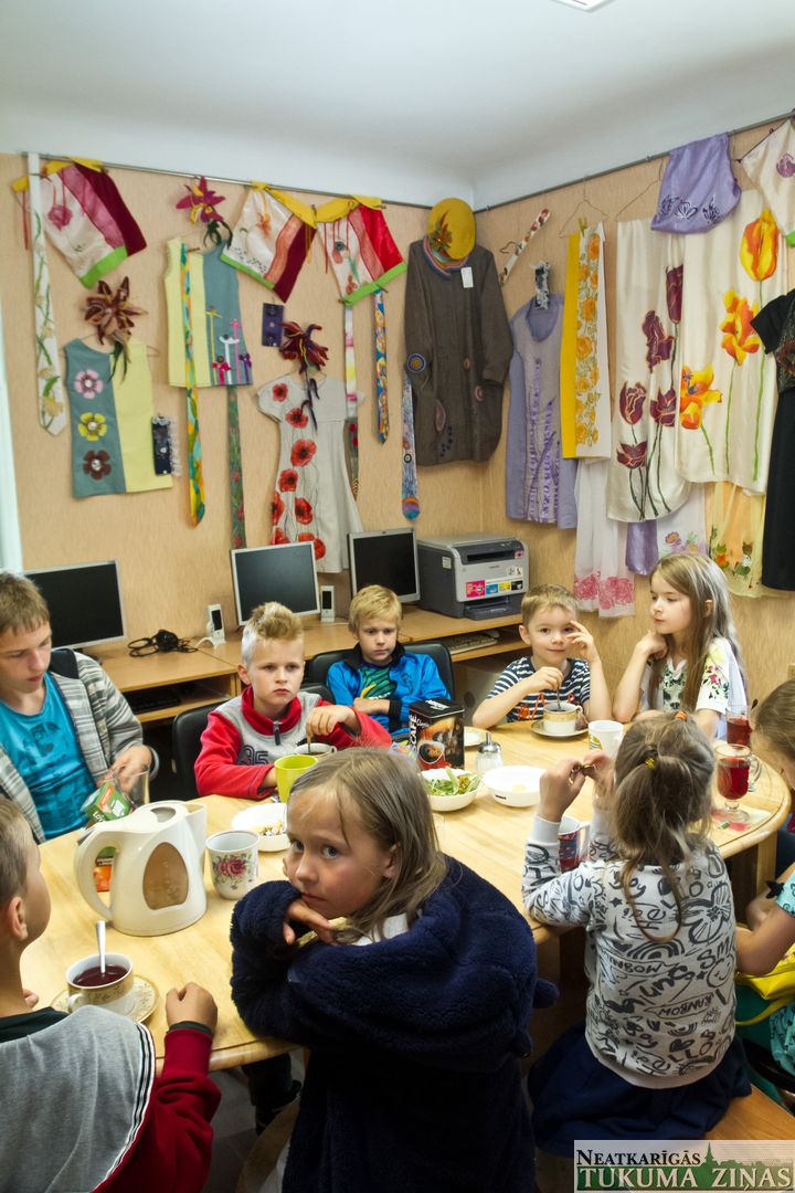 7. jūlijā, devāmies ciemos uz Lazdu bibliotēku Vecmokās, kur visu nedēļu tuvākās apkaimes bērni radošajās darbnīcās veidoja dažādus dekorus. Bibliotekāre Irēna Pavloviča pastāstīja, ka šī tradīcija vasarā bērnus nodarbināt radošās aktivitātēs sākusies pagājušajā gadā. Šogad tās apmeklē apmēram divdesmit bērnu. Pirmajā dienā bērni kopā ar skolotāju Ivetu Liepiņu taisījuši mini gobelēnus no dabas materiāliem, bet nākamajā dienā no olu briketēm gatavojuši dekoratīvās kamīna rozes, kuras var izmantot kā dekoru, dāvanu vai arī kamīna iekuram, jo rozes zieds tiek iemērkts izkausētos sveķos. 7. jūlijā ciemošanās laikā bērni bija izveidojuši sapņu ķērājus.