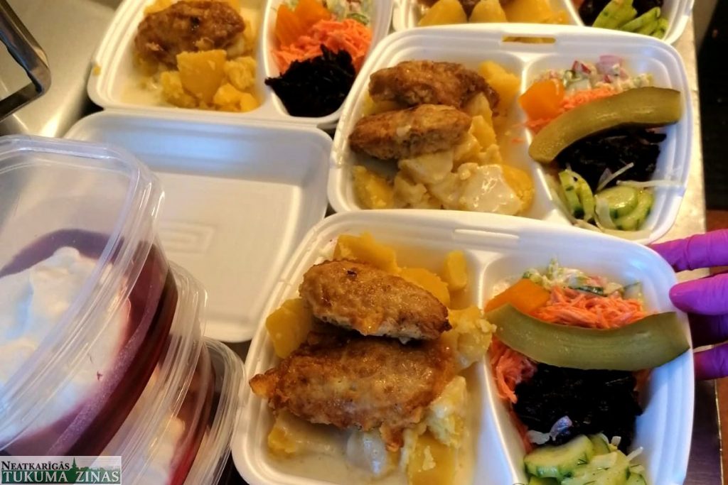 Arī līdz šim trūcīgie un maznodrošinātie bērni saņēma pusdienas – sākumā tās divas reizes nedēļā izdalīja Latvijas Sarkanā Krusta Tukuma komiteja, bet no šīs nedēļas – ar piegādi mājās, savukārt no pirmdienas, 6. aprīļa ēdienu gatavos SIA «IRG» Tukuma 2. pamatskolas ēdnīcā, bet uz mājām to nogādās sociālā dienesta darbinieki. Kā stāstīja Tukuma novada Sociālā dienesta vadītāja Ina Balgalve, līdz šim ar sešiem transportlīdzekļiem pusdienu izvadāšana aizņēma dienā divas stundas, nu atbalstu solījušas arī izglītības iestādes un pagastu pārvaldes. Tukuma novada domes priekšsēdētājs Normunds Rečs informēja, ka šim mērķim tiks izlietots jau budžetā paredzētais valsts un pašvaldības finansējums bērnu ēdināšanai 1,50 eiro par porciju (0,71 eiro no valsts un 0,79 eiro no pašvaldības, kā arī papildus pašvaldība finansēs 0,15 par vienreizējiem traukiem). Bērnus, tāpat kā līdz šim, apzinās sociālais dienests sadarbībā ar izglītības iestādēm. Plānots, ka šī ēdināšana tiks nodrošināta līdz 30. aprīlim, taču, ja ārkārtas situācija valstī tika pagarināta, lēmumu pārskatīs un par tālāko atbalstu lems vēl domes sēdē 29. aprīlī.