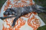 Blakus mirušajam dzīvniekam uz meža takas sniegā redzamas automašīnas pēdas. To, vai suns notriekts ar auto un ievests mežā, vai iemidzināts, vai kādā citādā veidā savu pēdējo stundu sagaidījis un nomests, to mēs vairs neuzzināsim. Pa šo nomaļo meža ceļu mašīnas parasti nebrauc, tas atrodas meža vidū.