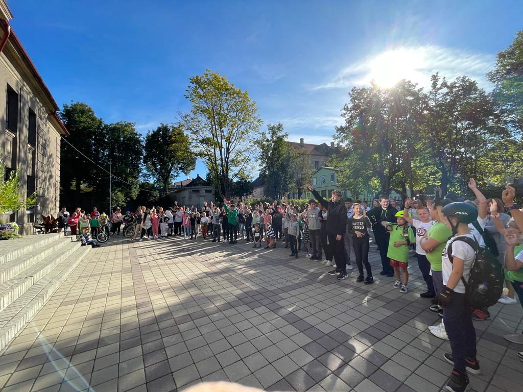 Apliecinot savu apņēmību ne tikai vārdos, bet arī darbos, kā skolēni, tā skolotāji devās uz stadionu izbraukt ar velosipēdiem, bet pārējie šo pašu maršrutu pievārēja skrienot.