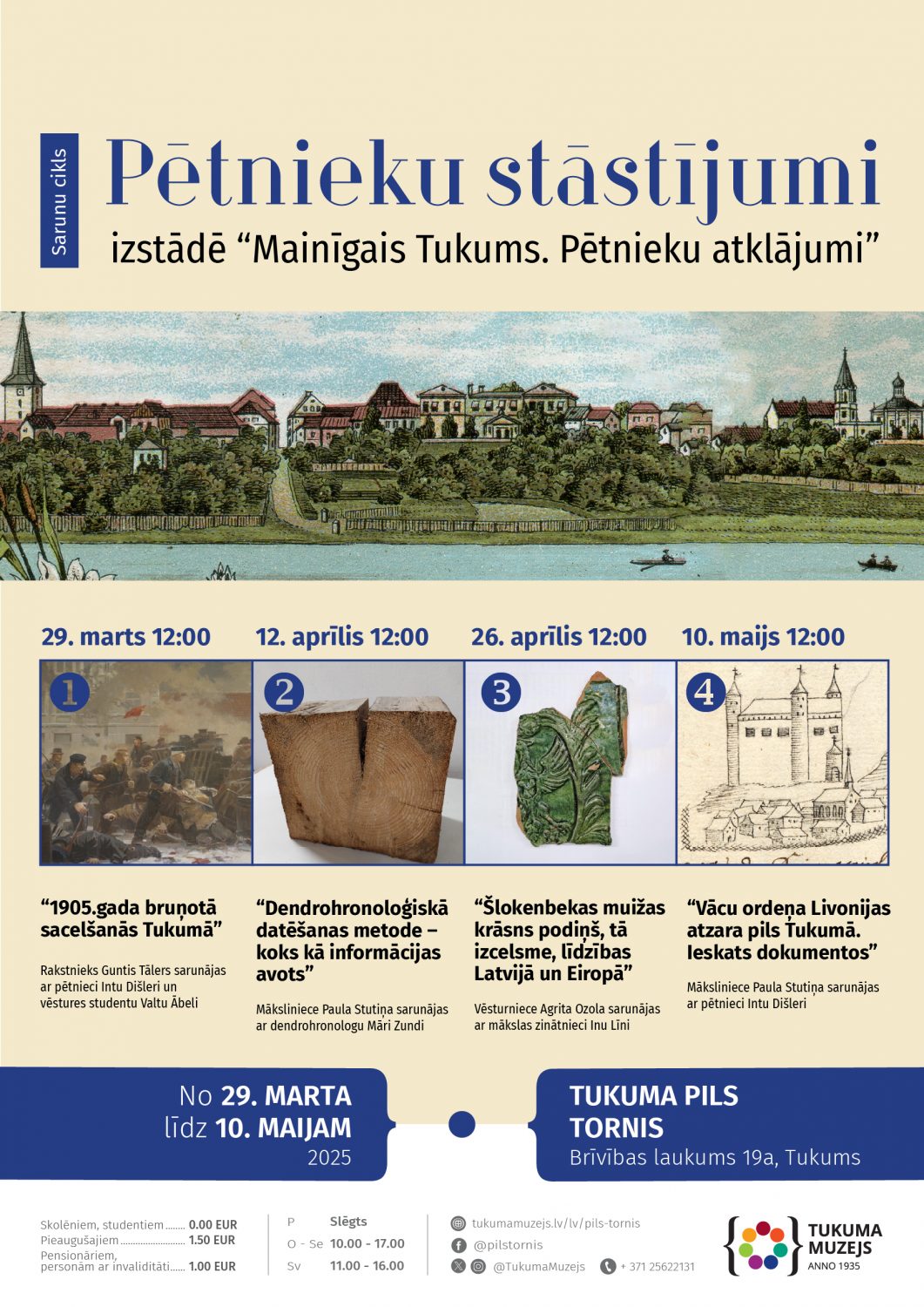 29. martā plkst. 12.00, kad notiks pirmā sarunu cikla “Pētnieku stāstījumi” tikšanās, rakstnieks Guntis Tālers sarunāsies ar pētnieci Intu Dišleri un vēstures studentu Valtu Ābeli par tēmu “1905.gada bruņotā sacelšanās Tukumā”.