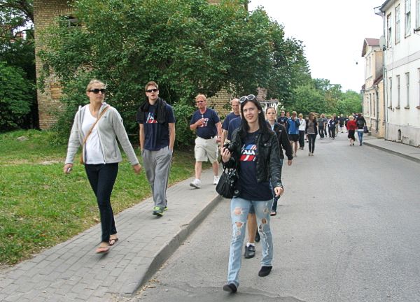 Šodien Tukumā tika sagaidīta Amerikas latviešu delegācija, kuras dalībnieki piedalās sporta sacensībās volejbolā un basketbolā dažādās vietās Latvijā, tostarp arī Pūrē.