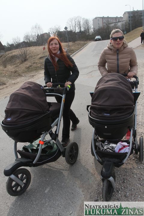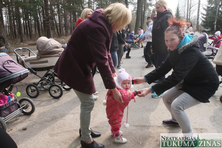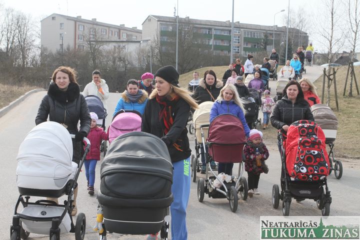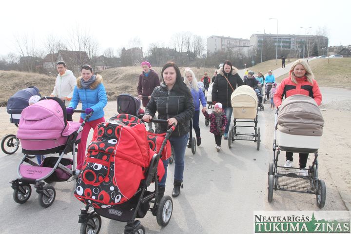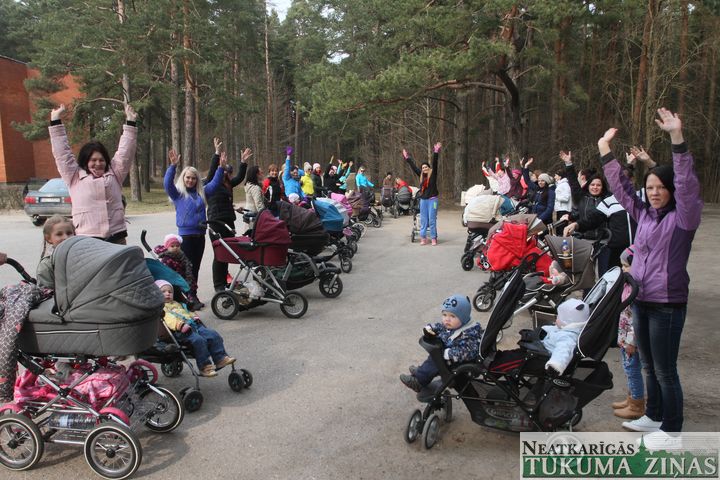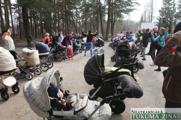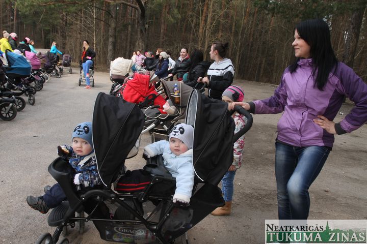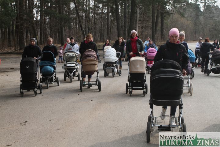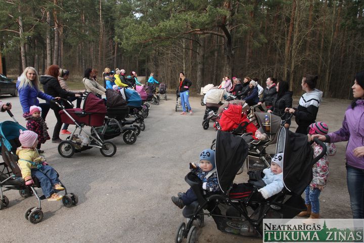 Ceturtdien, 26. martā, nevienu vien tukumnieku pārsteidza vienreizējs skats – trīs duči jauno māmiņu ar bērniem ratiņos vai pie rokas devās gājienā uz Melnezeru, lai kopā ar bērniem atpūstos veselīgi – baudītu svaigu gaisu un mundri vingrotu.