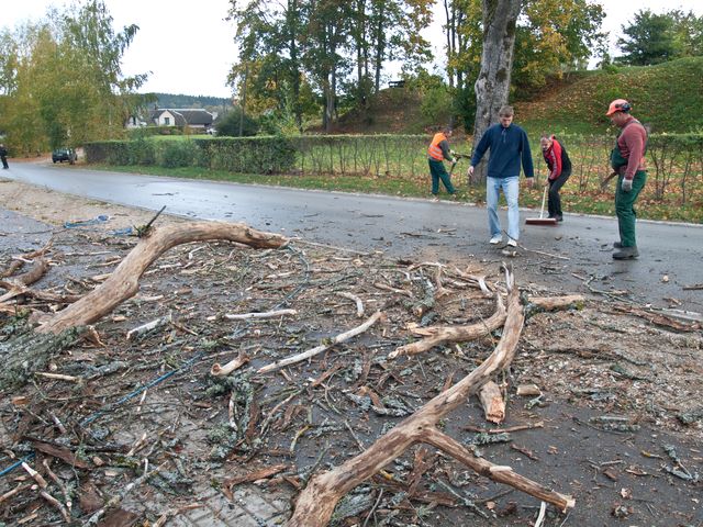 Lai arī lielāko daļu koku pie Durbes pils nozāģējuši paši Tukuma muzeja darbinieki, lai nozāģētu arī šo – vienu no pēdējiem, nācās saukt talkā speciālistus. Vispirms koku atsēja, lai krītot pāri ielai tas nemainītu virzienu, un uz mirkli pašvaldības policija aizturēja satiksmi Durbes ielā.
