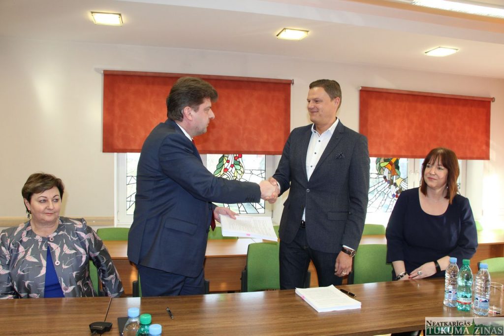 Šodien, 12. februārī, Tukuma novada domē tika noslēgts līgums ar Tukuma 2. vidusskolas pārbūves konkursa uzvarētāju SIA «Bildberg». Līgumu parakstīja SIA «Bildberg» valdes loceklis Gatis Bērziņš un Tukuma novada domes priekšsēdētājs Normunds Rečs, klātesot Tukuma novada Izglītības pārvaldes vadītāja pienākumu izpildītājai Maritai Bērziņai un Tukuma 2. vidusskolas direktorei Anitai Locānei.
