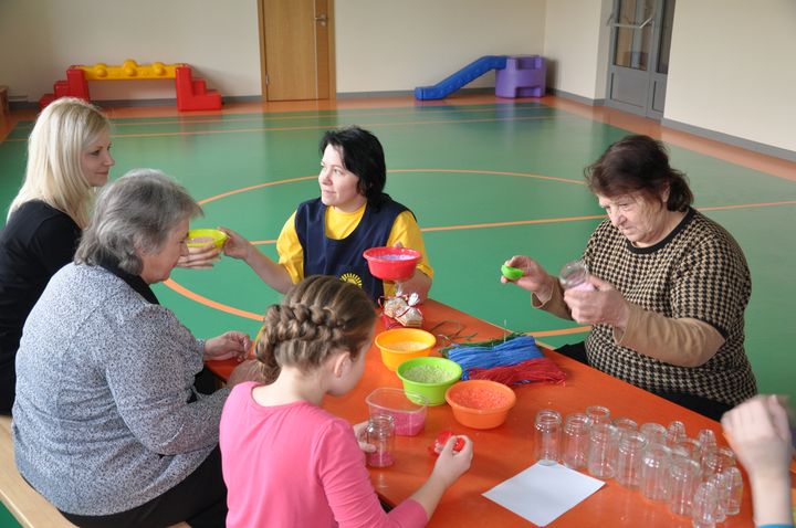 Omes darbojās radošajās darbnīcās – gatavoja saviem mīļumiem kūciņas, uzbūra skaistas apsveikuma kartītes, veidoja kompozīcijas no krāsainajām smiltīm un izmēģināja spēkus dāvanu maisiņu radīšanā. Pēc čaklās darbošanās bērni sniedza koncertu un bučas savām omēm, kas māca viņiem redzēt un sajust rīta rasu, cep raušus tā kā pogas, dod mazbērniem prieku un paveic ik darbu kā nieku. Paldies visiem vecvecākiem par kopābūšanas prieku ko sniedzāt mums – «Karlsona» kolektīvam.