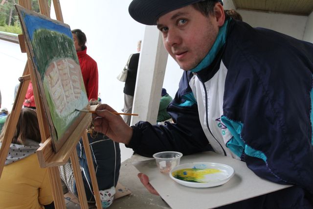 Plenēru pieredzi no tukumniekiem aizguvuši baušķenieki. Kā stāstīja sociālā darbiniece Ineta Niedra, pirms diviem gadiem sākuši piedalīties un tagad jau rīko paši savus. Nākamo otrdien arī pie viņiem būšot plenērs, tikai mazāks un pašiem sev. Cilvēkiem ar īpašām vajadzībām šāda kopīga strādāšana esot ļoti no svara, tāpēc, ja vien ir iespējams, meklē transportu un brauc uz plenēru. Divas stundas līdz Tukumam mērojuši «Allažu» pansionāta ļaudis. Ar zīmēšanu sākuši nodarboties nesen, tā ka vēl lielas pieredzes neesot, tomēr kopā ar viņiem atbraukusi skolotāja Ivita Vītola-Volka, kas darbiņu un krāsas ierāda. Šāda radoša darbošanās visiem dodot prieku, tāpēc maza bēda par lietu un vēju.