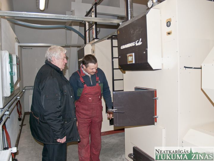 Apjomīgajā rekonstruētajā ēkā izvietoti divi lieli «Grandeg» firmas granulu apkures katli, katrs ar 200 kilovatu lielu jaudu. Turpat blakus novietoti siltā ūdens akumulatori, kas izskatās kā oranžos apvalkos ietērpti baloni, katrs ar 4 m³ ietilpību, un spiedtrauki spiediena svārstību regulēšanai. Kā saka Tukuma muzeja atbildīgie – Vilnis Kaktiņš un Aivars Šmitenbergs – katlumājā viss ir pilnībā automatizēts, tikai pelni būšot jāizgrābj pašiem.