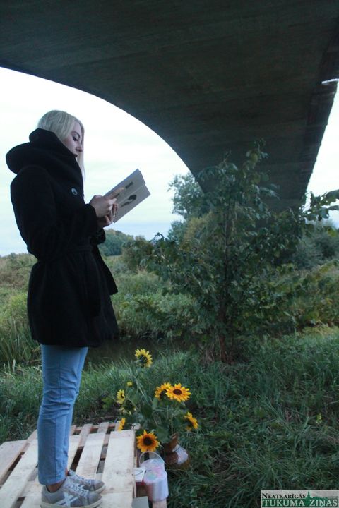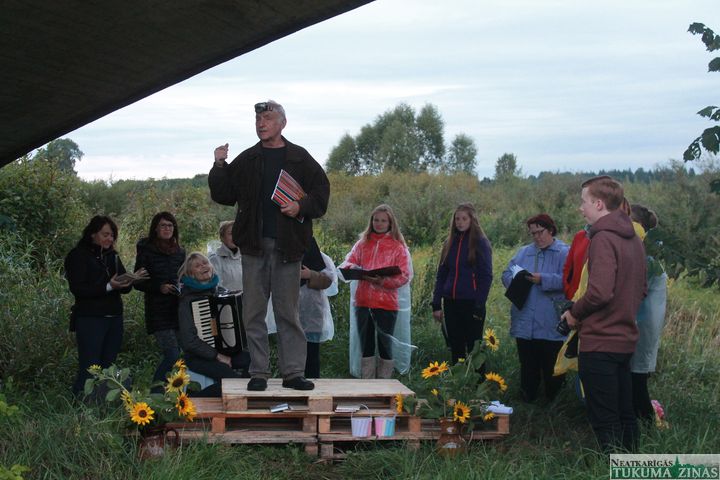 Piektdienas vakars zem tilta – Abavas upes krastā un tikko kā uzartā lauka malā – bija kluss, tikai uz mirkli klusumu pārtrauca kāda garāmbraucošā transporta skaņa, brīžiem bija dzirdams, kā sijājas smalks lietus, bet, tumsai iestājoties, arvien skaļāka kļuva sienāzīšu čirkstināšana. Un pāri visam – mazliet nereāli skanēja dziesmas un dzeja, un bija sajūta, ka tikai tamdēļ vien šī vieta reiz tikusi radīta, lai reiz te kāds dziedātu vai dzejotu – tik labi te skan.