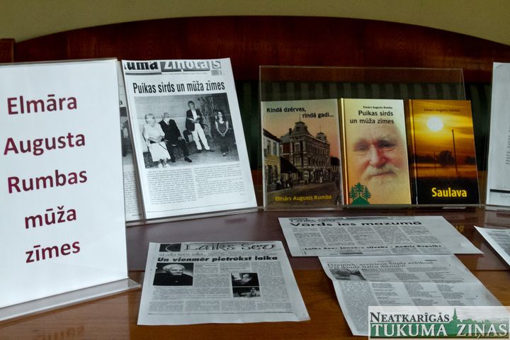 “Tukums – tas ir Rumbas, Rumbas – tas ir Tukums – šie Tukuma literātu apvienības vadītājas Gunas Rozes teiktie vārdi, kas 2. martā izskanēja Durbes pilī, bija tie precīzākie, ar kuriem sākt visu cienījamā tukumnieka (bērnībā – jaunpilnieka), dzejnieka, publicista un vēsturnieka Elmāra Augusta Rumbas 85. dzimšanas dienas svinības. Gan tāpēc, ka tāds bija šī Tukuma literātu apvienības un Tukuma muzeja rīkotā sarīkojuma noskaņojums, gan tāpēc, ka tā gluži vienkārši ir neapgāžama patiesība, kuru turklāt apliecināja paša jubilāra rakstītie dzejoļi. Tajos galvenā loma viņa paša trāpīgajam vārdam, Tukumam, muzejam un dzīvesbiedrei Annai Rumbai.