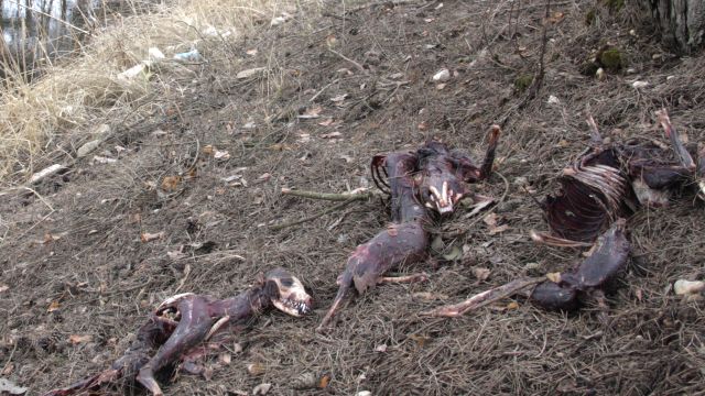 Tajā pat dienā kopā ar sievieti aizbraucām uz notikuma vietu un ieraudzījām patiešām nepatīkamu skatu – grāvja malā bija nosviests viens, bet dziļāk grāvī – vēl daži dzīvnieku ķermeņi bez ādas. Par notikušo informējām Pārtikas un veterināro dienestu.