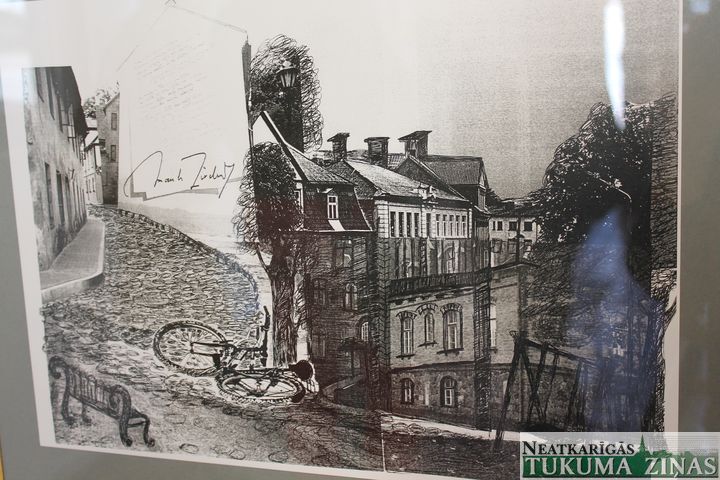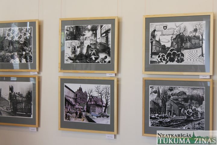 Galerijā apskatāmi visu trīs jaunapgūto tehniku paraugi – mailarta jeb pasta sūtījumu mākslas objekts, lodīšu pildspalvas zīmējums un kolāža. Jāteic, tieši tās pārsteidz visvairāk – darba procesā no kartiņām, avīžu izgriezumiem un bukletiem izgrieztie kolāžu objekti, uz lapas salīmēti un ar katra autora zīmējumu blakus, vairāk izskatījās pēc raiba jūkļa nevis mākslas, taču, kopētājā nokopēts, katrs darbs atklāj interesantu katra autora stāstu par Tukumu.