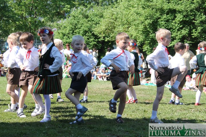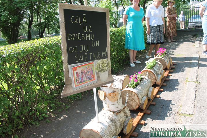 Piektdien, 23. maijā, pirms vēl saule bija pakāpusies savā augstākajā punktā, Tukuma bērnudārza «Vālodzīte» pagalmā pulcējās gan lielie (bez piecām minūtēm absolventi), gan mazie un pavisam mazie bērni, kā arī viņu vecāki un citi līdzjutēji. Jau otro gadu pēc kārtas te norisinājās pašmāju Dziesmu un deju svētki, kur katrai grupiņai bija savs vienojošs ietērps, kam atbilstoši arī bija jādemonstrē kāds īpaši šai reizei sagatavots priekšnesums. Bija dejas, bija dziesmas, pat improvizēta orķestra uzstāšanās un ciemiņu – mūzikas skolas sitaminstrumentu ansambļa – paraugdemonstrējumi. Noslēgumā godā tika celts tikko kā tapušais «Vālodzītes» karogs, uz podestiem kāpa audzinātāju un auklīšu kopkoris, kā arī notika kopīga dancošana. Vecākiem atlika vien sparīgi aplaudēt un, izdevīgā brīdī,  ķert atraktīvākos pasākuma fotomirkļus.