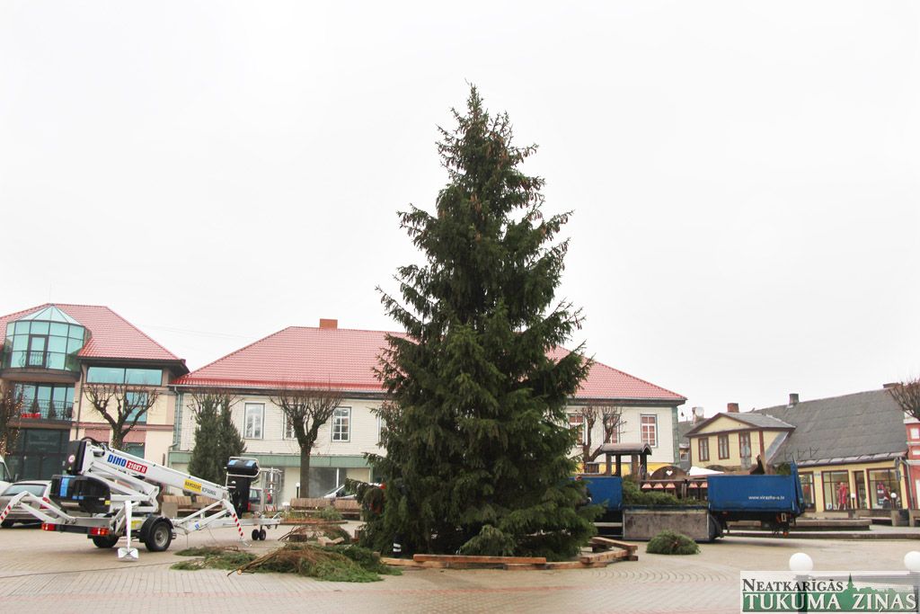 Vakara aizsegā, 28. novembrī, Brīvības laukumā Tukumā tika uzstādīta Ziemassvētku eglīte. Jāatgādina, ka iepriekšējās divas izbrāķēta, jo neatbilda sākotnējām prasībām.