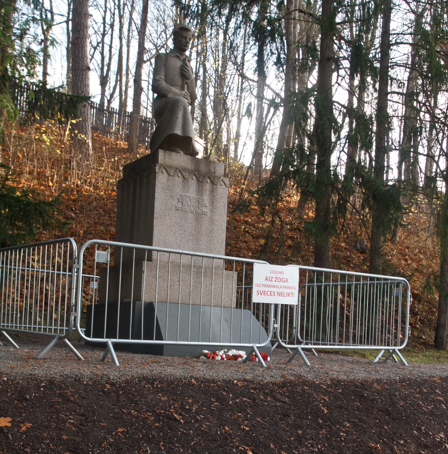Lasītājs jautā: Es ilgi domāju, zvanīt vai nezvanīt uz redakciju, taču izlēmu, ka tomēr ir kaut kas jāpanāk. 11. novembri biju nolikt svecītes pie pieminekļa Puisītim Meža kapos. Cilvēki nāca un gāja, bet ik pa laikam kāds pabrīnījās, kāpēc piemineklis ir aiz žoga. Domāju, nu ko tie cilvēki tur runā, bet, kad pati piegāju pie pieminekļa, mani pārņēma samulsums – ap Puisīti bija aplikts žogs un pašā priekšpusē uzlikts liels plakāts ar aizliegumu likt svecītes. Ziniet, esmu vecs cilvēks un daudz ko pieredzējis, bet pat padomju laikā ap šo pieminekli nebija žoga! Mani tas tik ļoti satrieca, ka nolēmu aicināt jūs kaut ko darīt lietas labā, lai vismaz līdz valsts svētkiem to visu varētu aizvākt. Ir taču dažādi veidi, kā var izveidot vietu svecītēm, domē taču ir tik daudz gudru un zinošu cilvēku, kas prot tika labas lietas paveikt, tikai vienu gan lūdzu: noņemiet to žogu! Un vispār – vai ap šādu pieminekli, kas taču ir kultūrvēsturisks objekts, drīkst likt tik neglītu žogu?!