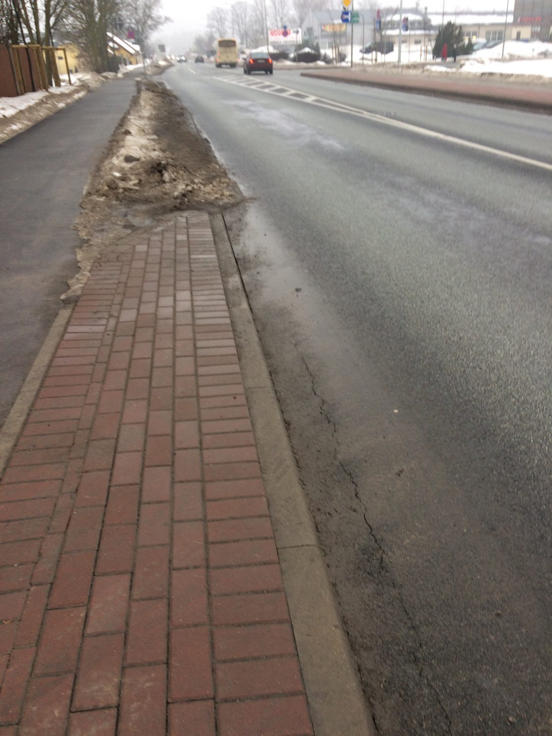 ar ietvi tur mazs sakars - braucamajai daļai nav sablīvējuma ( pamatnes ). Bildē var redzēt autobusa pēdas tuvu ceļa apmalei!