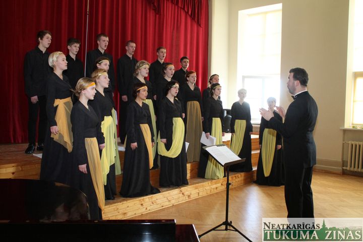 Pasperot solīti pretim lielajiem Skolēnu Dziesmu svētkiem un aicinot klausītājus iepazīt gaidāmo svētku repertuāra dziesmas, Tukuma Raiņa ģimnāzija trešdien, 12. marta pēcpusdienā, aicināja uz Talsu 2. vidusskolas jauktā kora «Talsis» un ģimnāzijas jauktā kora «Savējie» sadziedāšanos.