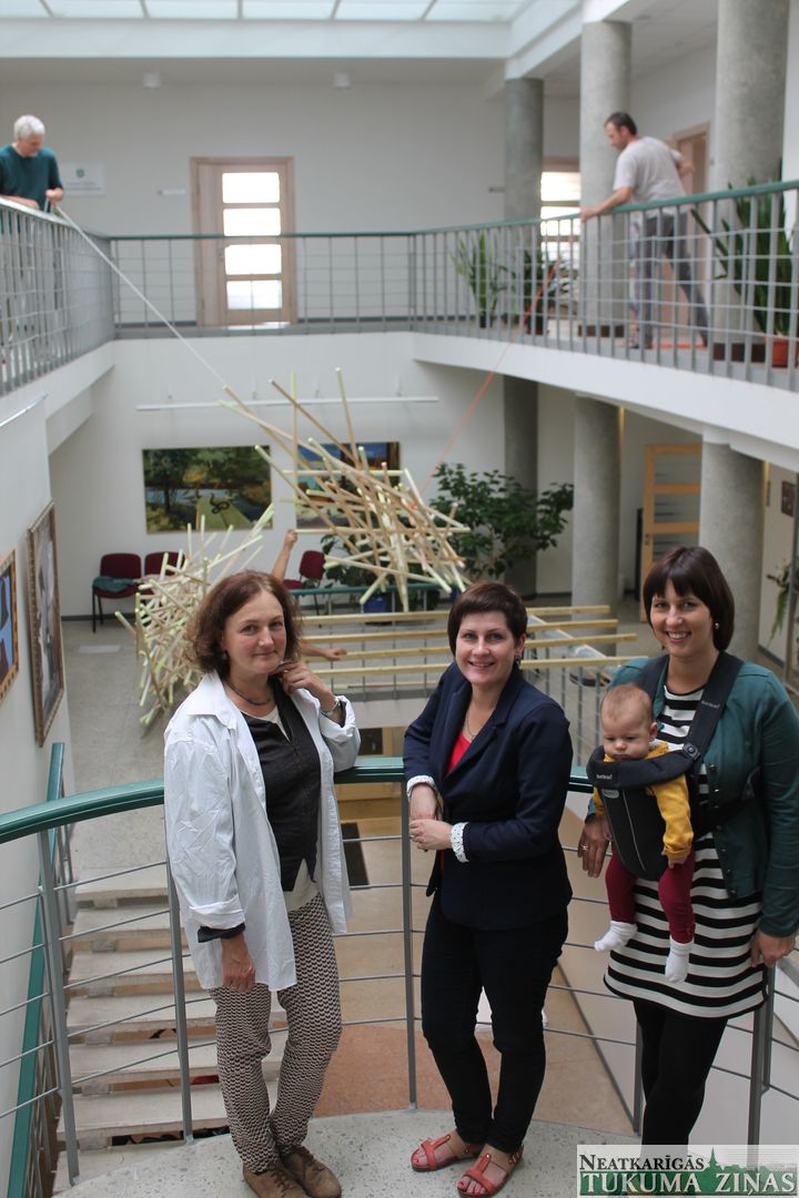 Gatavojoties Kurzemes Mākslas un Dzejas dienām, kas Tukumā norisināsies 12. un 13. septembrī, Tukuma novada domē pastrādājuši Kuldīgas mākslinieki – starp stāviem pašvaldības ēkas vestibilā novietots objekts «Jauna sezona».