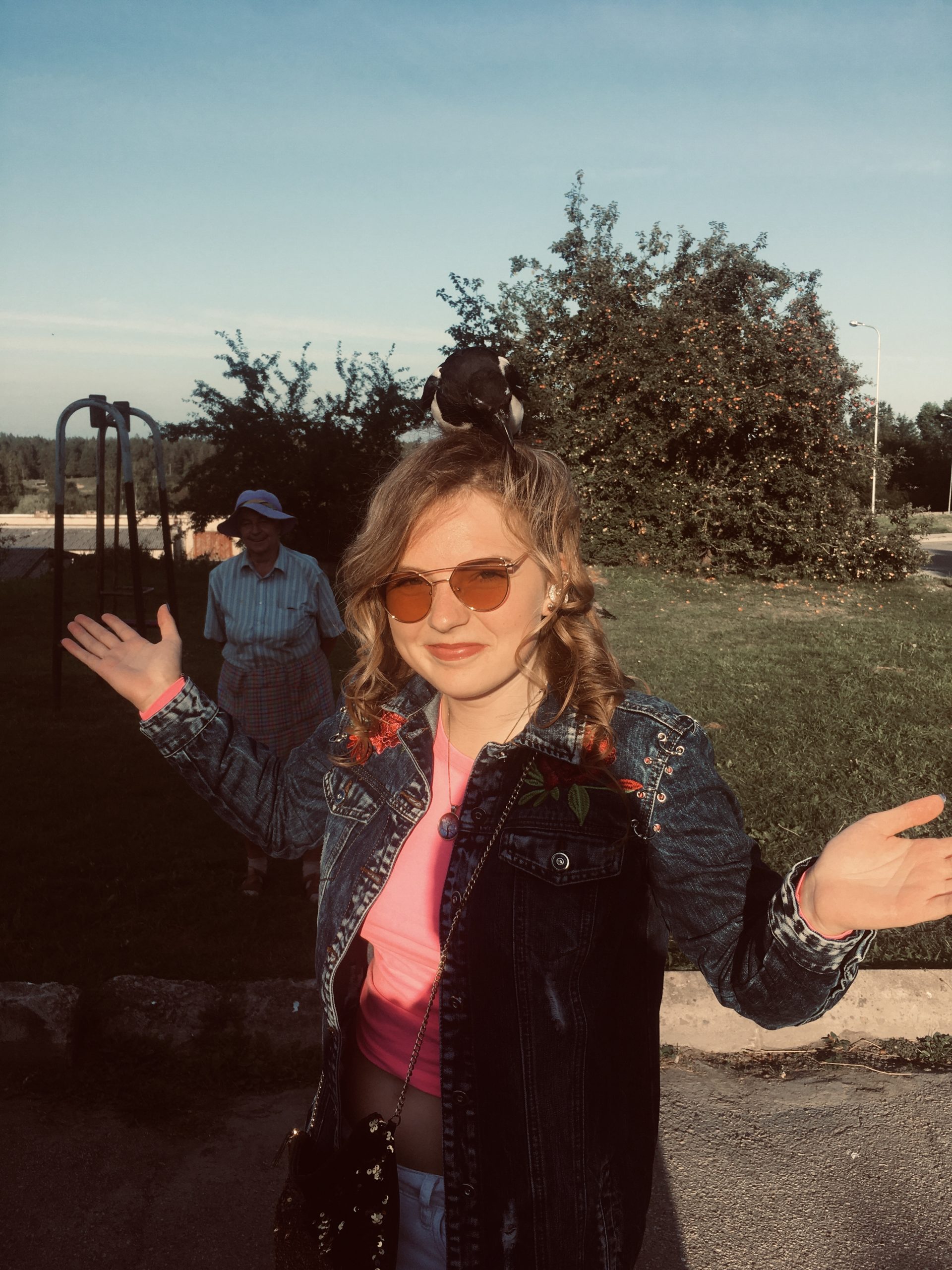 Mums – žurnālistiem – pašiem izmanīgo putnu fotogrāfijā iemūžināt tā arī neizdevās, bet vakar, 24. augustā, ilustratīvs apliecinājums stāstītajam iekrita virtuālajā pastkastītē. “Celtnieku ielas jaunā iemītniece žagata pēdējās dienās nobiedējusi ne vienu vien lielu un mazu garāmgājēju. Pārliecinājāmies, ka tā ir ļoti komunikabla un vēlas nevis uzklupt, bet draudzēties. Sākumā putna uzlaišanās uz galvas mazliet biedēja, jo atgādināja kādu no Hičkoka šausmenēm, bet putns tikai maigi pavandīja frizūru, pabakstīja saulesbrilles un ar jauno mājvietu likās ļoti apmierināts. Nezin, cik ilgi žagata tur būtu sēdējusi, ja matu īpašniecei nebūtu citu plānu. Bet, līdzko frizūra patvērās mašīnā, arī putnam izdevās tur iesprukt. Tas izpētīja braucamrīku, uzsēdās jaunajai draudzenei uz pleca un izrādīja gatavību braukt uz Rīgu. Pēc tam, kad žagata vairākkārt vēlreiz bija nosēdusies uz matiem, mēs atkal iekāpām mašīnā un likām manīt, ka laiks iet katram savu ceļu. Žagata pārstaigāja mašīnas jumtu, pieklauvēja pie lūkas un aizlidoja dārziņu virzienā. Kurš ir pazaudējis putnu? Žagata meklē savu pieradinātāju!” vaicā foto autore.
