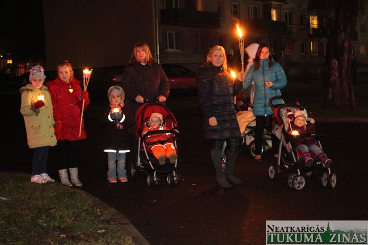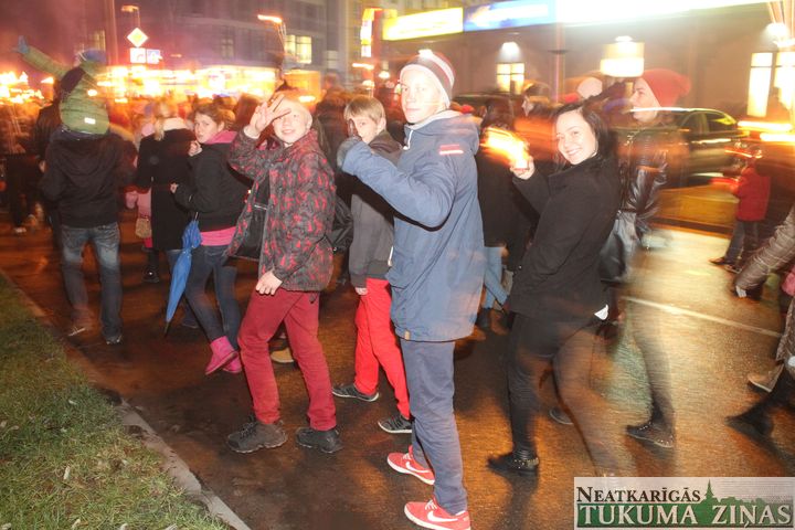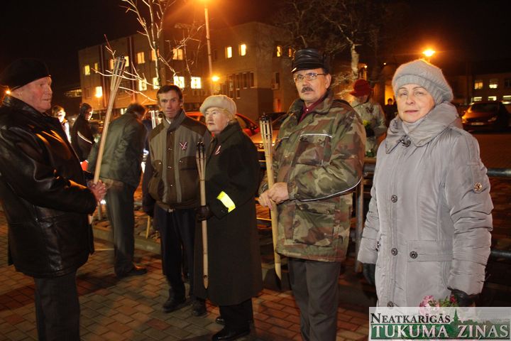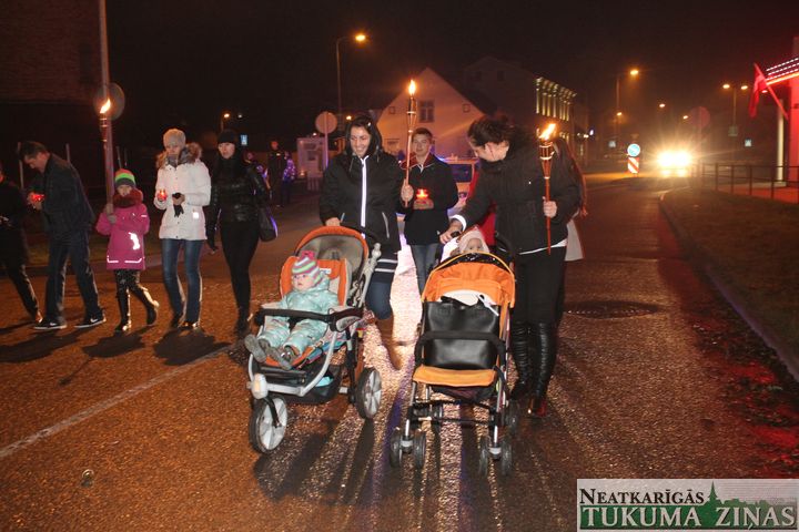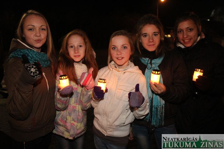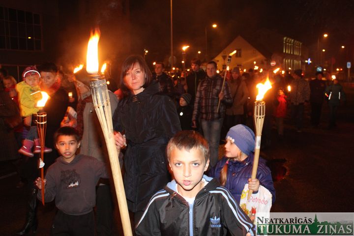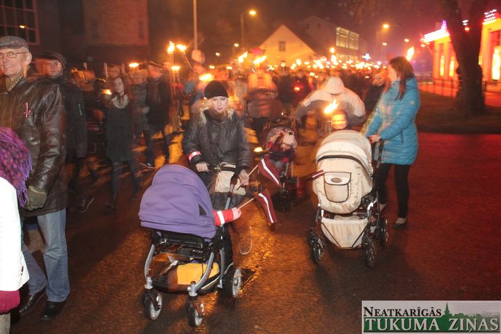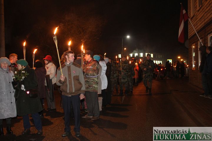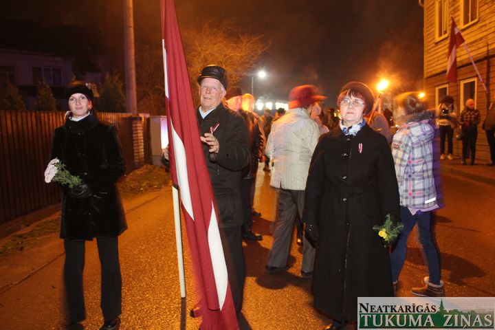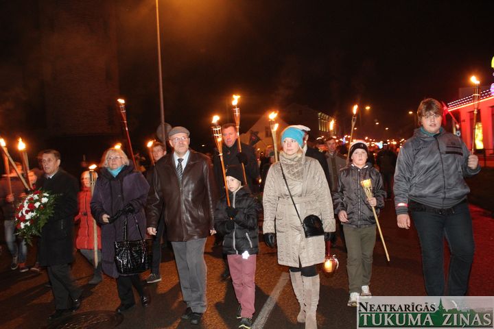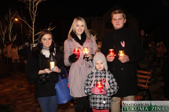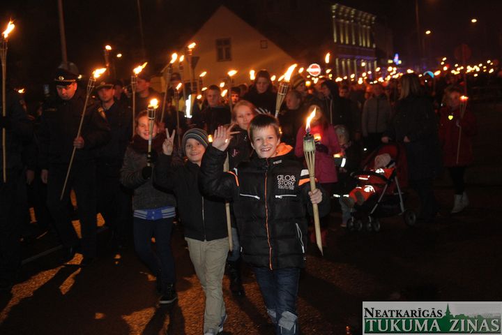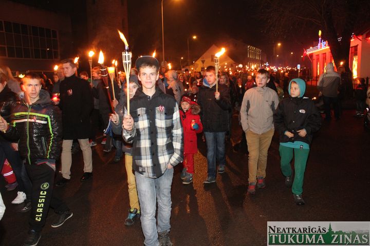 Lāčplēša dienas Lāpu gājienā pie Tukuma novada domes 11. novembrī pirms 18.00 teju tūkstotis ļaužu pulcējās. Pārsvarā jaunieši. Ik ielā – Pasta, Meža un Kurzemes, pa kuru lāpneši gāja, tiem pievienojās lieli un mazi, jauni un veci – visi, kas varoņu piemiņu godā.