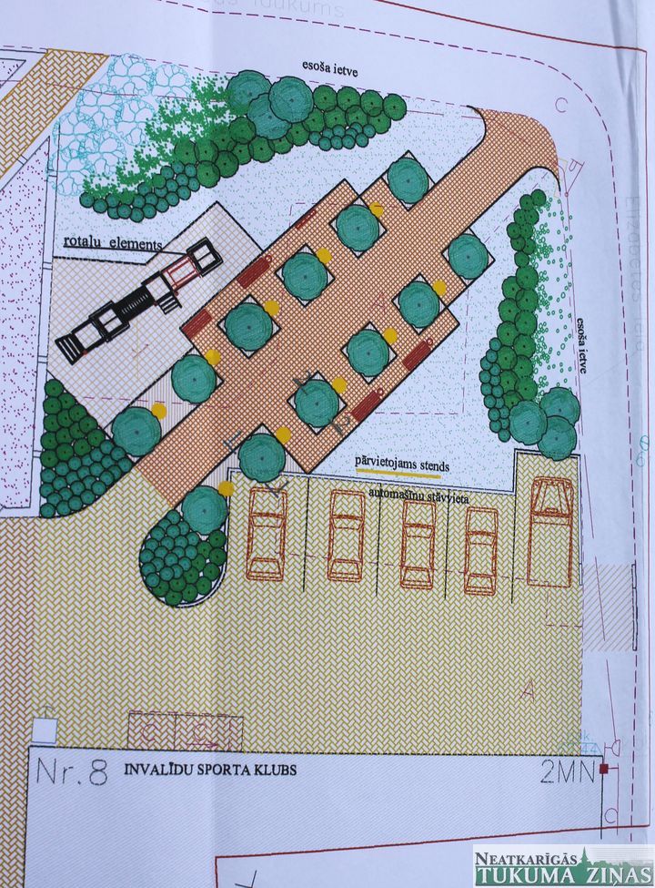 Projekts izstrādāts, lai sakārtotu šo laukumu un padarītu to ērtu cilvēkiem ar īpašam vajadzībām, kas ikdienas izmanto sporta kluba ēkas pakalpojumus. Pēc jaunā plānojuma laukumam mainīsies novietojums un to pārveidos tā, lai tajā ērtāk varētu iebraukt, lai būtu vairāk vietas specializētajam transportam un vajadzības gadījumā – arī autobusam.