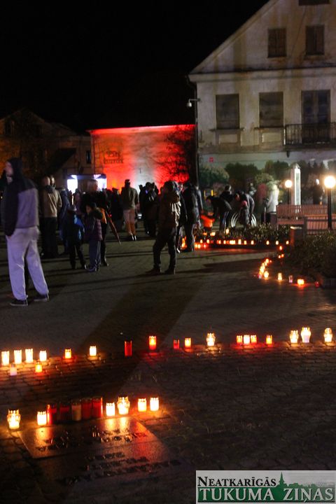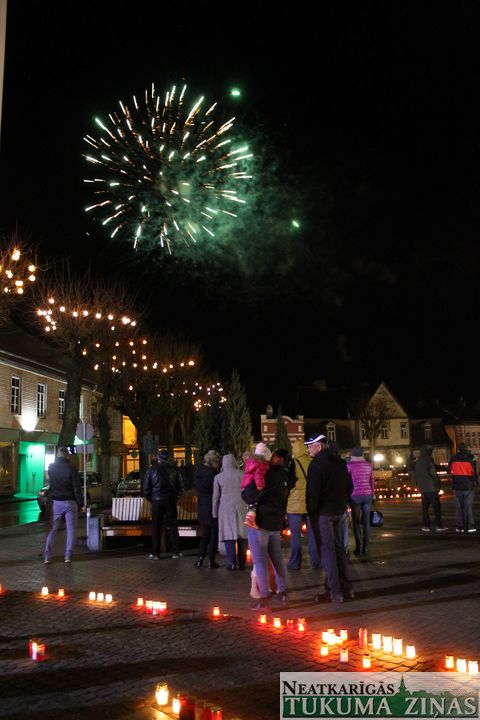 18. novembra – Latvijas 97. dzimšanas dienas – vakars Tukumā atnāca lietains un vējains, tomēr to bērnu un pieaugušo, kas vēlējās sveikt Latviju dzimšanas dienā, iededzot sveces Brīvības laukumā, bija daudz.