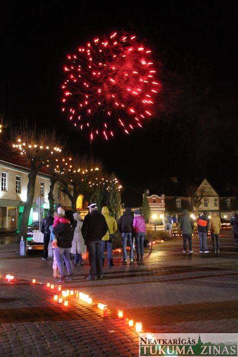 18. novembra – Latvijas 97. dzimšanas dienas – vakars Tukumā atnāca lietains un vējains, tomēr to bērnu un pieaugušo, kas vēlējās sveikt Latviju dzimšanas dienā, iededzot sveces Brīvības laukumā, bija daudz. Vēl šajā vakara Tukuma kultūras namā notika svinīgais sarīkojums, kurā tika pasniegti Tukuma novada domes Atzinības raksti, bi0ja svētku koncerts, pēc kura – uguņošana.