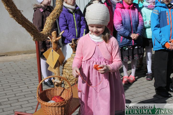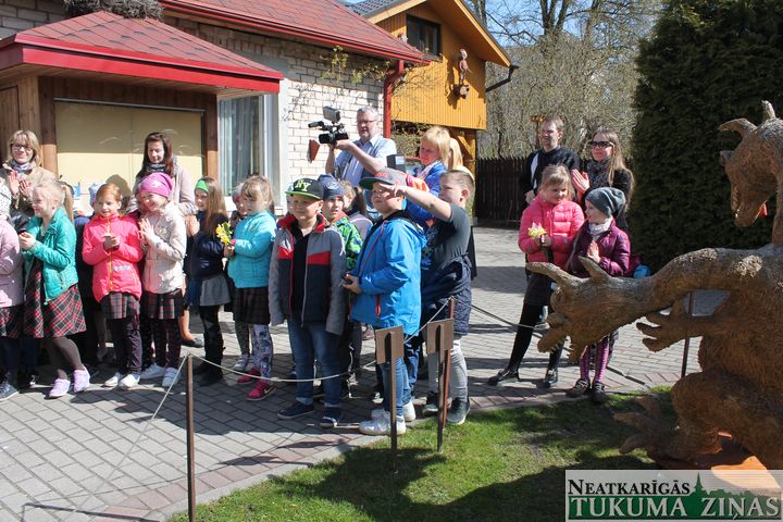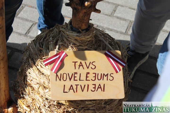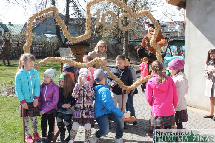Kā zināms, tās ašās idejas nereti ir tās labākās un tā – savs sveiciens valsts svētkos tapis arī «Salmu darbnīcā» Tukumā. Šorīt ar dziesmu un laba vēlējumiem Latvijai, te nelielā improvizētā ceremonijā tika atklāts īpaši valsts simtgadei izveidots foto rāmis, kas, protams, no salmiem. Kā pirmajiem nofotografēties tajā bija iespēja Tukuma 2. pamatskolas un Tukumā 2. vidusskolas 1. un 2. klasītēm kopā ar saviem skolotājiem. Tāpat katrs uzrakstīja apsveikumu vai vēlējumu valstij, kas tika ievietoti īpaši šim mērķim izgatavotā pudelē un kā stāsta darbnīcas saimniece Kristīne Zihmane-Rītiņa, tā tiks atvērta uz valsts svētkiem 2018. gadā. Bet līdz tam – savu vēstījumu te var atstāt jebkurš darbnīcas apmeklētājs. Bet šajā reizē, vēl pirms lielās fotografēšanās un arī citu salmu veidojumu sīkākas izpētes, dziesmu Latvijai veltīja Emīlija Šmita.