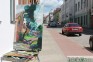 Sestdien, 28. jūnijā, Lielajā ielā starp dažādu krāsu mājām un košumkrūmiem sastapām Engures gleznošanas studijas dalībnieces, kuras šogad plenēra darbos gleznoja Tukumu. Lielo ielu.