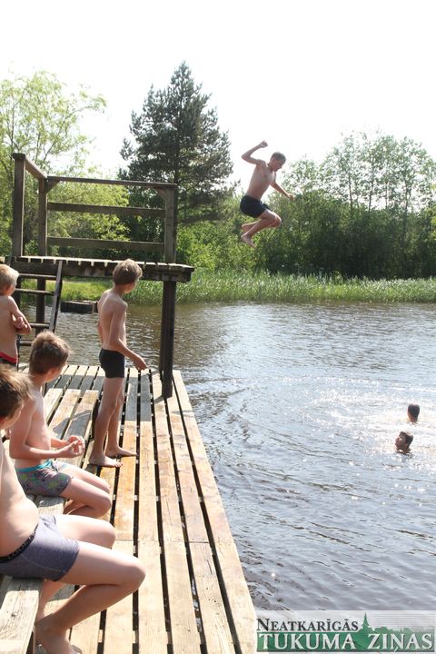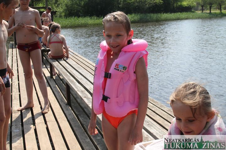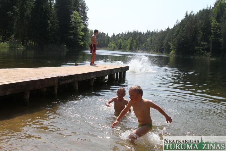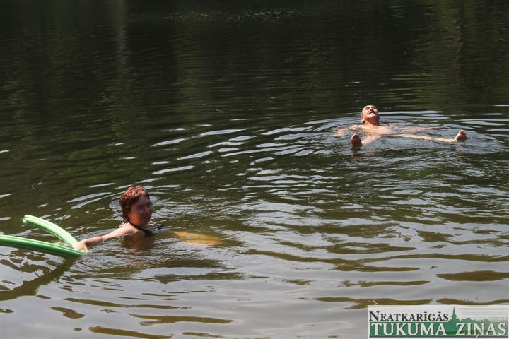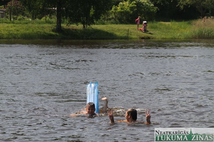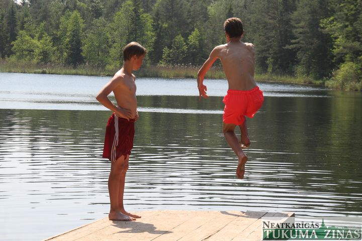 Milzkalnes peldētavu puiku un meiteņu vairāk nekā Melnezerā, taču tikai dažus no krasta vēro līdzi atnākušie pieaugušie. Par drošību uz ūdens mēģinām runāt arī ar puikām, kas gan vietējie, gan tukumnieki un uz mutes nav krituši. Viņi smej, ka pašu bariņā viss tiekot pieskatīts – viens visu laiku ir ūdenī, bet citu vispār tajā nelaižot, lai sēž krastā un skaita galvas. Esot arī tādi, kas vannā varot noslīkt. Jā, mazliet bravūrīgi zēni un, dod, Dievs, lai nenotiek nelaime! To arī mēs – žurnālisti – visiem šovasar novēlam!