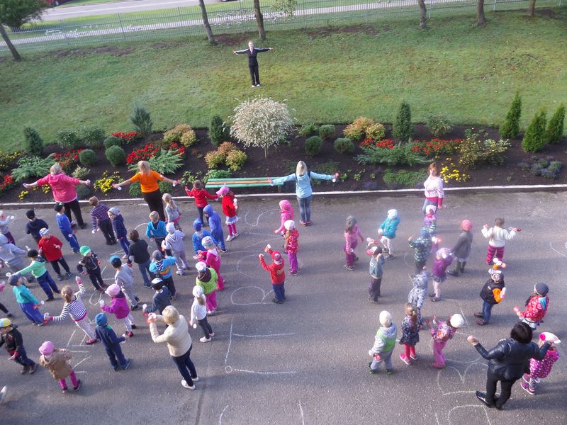 Rīta vingrošana ir ikvienas pirmsskolas izglītības iestādes dienas režīmā un bērni šai procesā piedalās ar prieku.