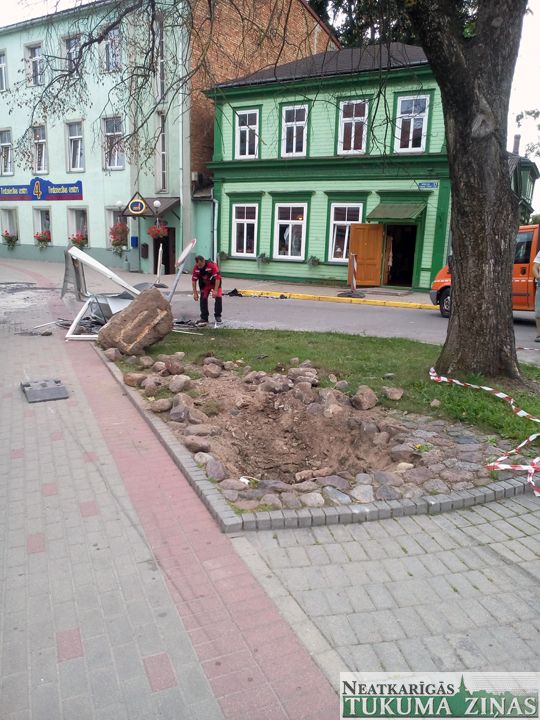 8. augustā 1.45 Tukumā, Brīvības laukumā, 1980. gadā dzimis vīrietis vadīja automašīnu «Volvo s60» pa Elizabetes ielu un acīmredzami neizvēlējās atbilstošu braukšanas ātrumu, jo netika galā ar auto vadību. Tas tieši pretī policijai nobrauca no ielas braucamās daļas un uztriecās reklāmas stendam, to ”izraujot ar visām saknēm” jeb betonējumu. Pēc sadursmes ar reklāmstabu auto apgāzās un ietriecās automašīnā «BMW 525», bojājot arī to. Negadījumā, satraumējot muguru, cieta automašīnas «Volvo s60» pasažieris, 1969. gadā dzimis vīrietis, kas stacionēts. Tā kā autovadītājs atteicās no izelpas pārbaudes ar alkometru, policisti viņu nogādāja slimnīcā, kur paņemtas analīzes. To rezultāti vēl vakar policijā nebija saņemti. Par notikušo satiksmes negadījumu sastādīts protokols, tiek lemts par kriminālprocesa uzsākšanu.
