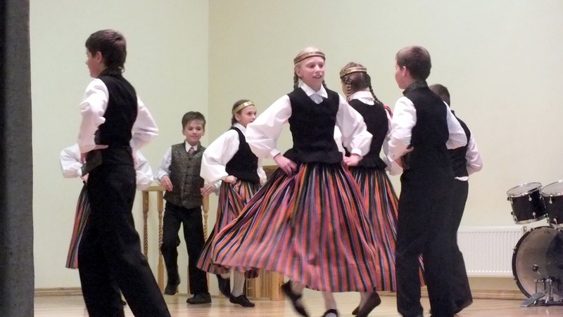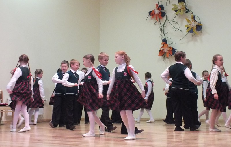 Liela daļa koncerta dalībnieku bija dejotāju rindās. Jāteic, ka nav nemaz tik vienkārši vadīt piecus deju kolektīvus, bet ar to prasmīgi tiek galā deju skolotājs Juris Poga. 1.b klase debitēja ar jautro deju «Jūgsim cūciņ!», savukārt 2. b klase ar «Uz akmeņa danci grieza». 3. b klase priecēja vecākus ar latviešu deju «Kas tur mežā brakšķēja», bet 4. b un 5. b klases rādīja savu meistarību ar latviešu dejām «Kas rīb?» un «Rimtai, juhtai!». Jāpiebilst gan, ka skolas skatuve ir krietni par mazu, lai visi 30 dejotāji vienlaicīgi raiti varētu ritināt deju soļus.