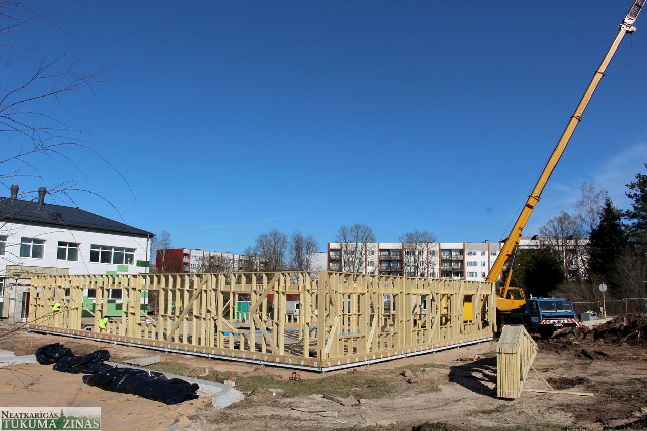 Lai arī moduļa ēkai pie bērnudārza «Pasaciņa» bija jābūt gatavai jau šī gada februārī, dažādu objektīvu un subjektīvu iemeslu tās būvdarbi ir sākušies tikai tagad. Šobrīd uz betona pamatnes top vienstāva ēkas koka karkass 412 m² platībā, kas tiks savienots ar bērnudārza pamatēku.
