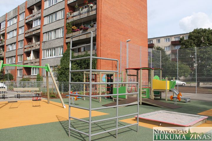 Ceturtdien, 3. septembrī, kad pašvaldības komisija iepazinās ar SIA «Amatnieks» paveikto. Ēkas galā izveidots rotaļlaukums ar īpašu gumijotu segumu un turpat blakus laukums ar basketbola grozu – to visu no divām pusēm iežogo sešus metrus augsts žogs.