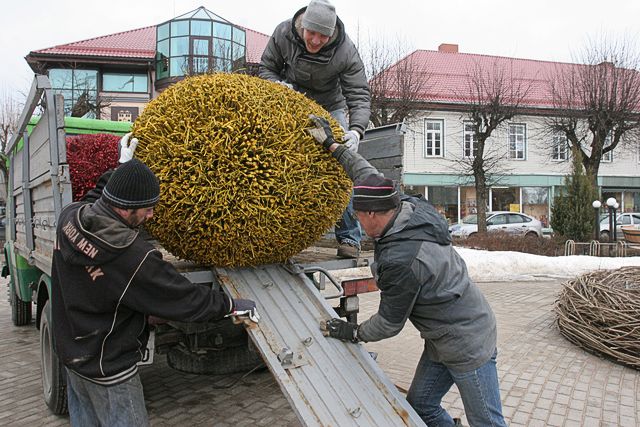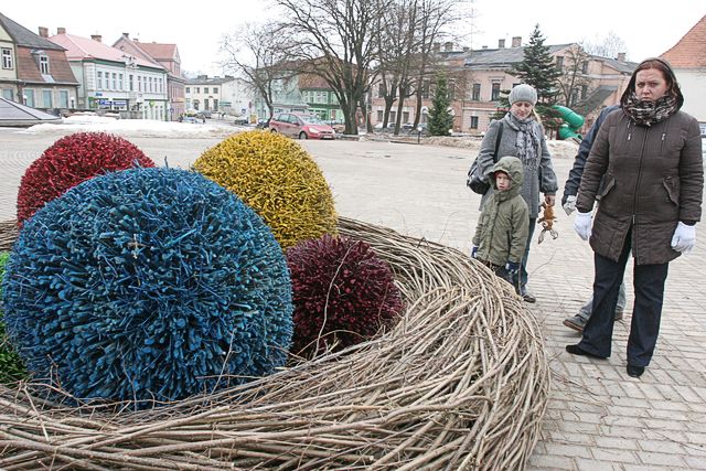 Arī pilsēta, sagaidot šos svētkus, sākusi rotāties. Pašas pirmās pie krāsainiem rotājumiem tikušas liepiņas Pils ielā. Putnu ligzdiņas šajos kokos vēl ir tukšas, taču koku zaros sakarinātas dzeltenas, sarkanas, zaļas un citu krāsu oliņas. Savukārt ļoti, ļoti liela ligzda – nu gluži vai dinozauram domāta un ar milzīgām olām – sariktēta Brīvības laukumā. Kā stāstīja novada domes ainavu arhitekte Maija Fogele, jāievēro taupības apstākļi, tāpēc daudzās vietās rotājumu nebūs. Vēl oliņas sakarinās kociņos pie ledus halles un aplī pie pumpām.