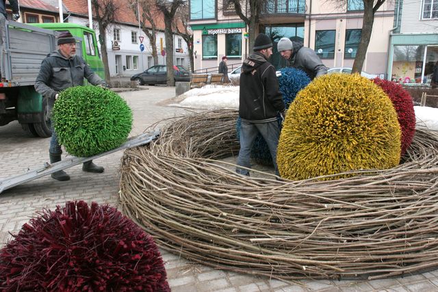Pilsētā izliek Lieldienu rotājumus