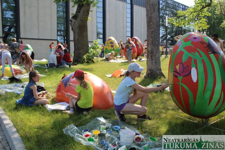 Ideju – pārveidot olas – Mākslas skolai uzticēja domes arhitektes Maija Fogele un Aivita Milta, domājot par to, kā padarīt šos vides objektus interesantākus. “Sākumā domājām, ka olas varētu rotāt ar Tukuma mākslinieku darbiem, taču autortiesību dēļ no šīs ieceres atteicāmies. Taču patiesībā šis risinājums ir vēl labāks, jo bērni šajā darbā var radoši izpausties un īstenot savas idejas. Mēs domājam, ka tam būs vajadzīgas vairākas dienas, bet tagad redzam, ka varēsim apgleznot vēl arī papildu olas,” tā M. Fogele.