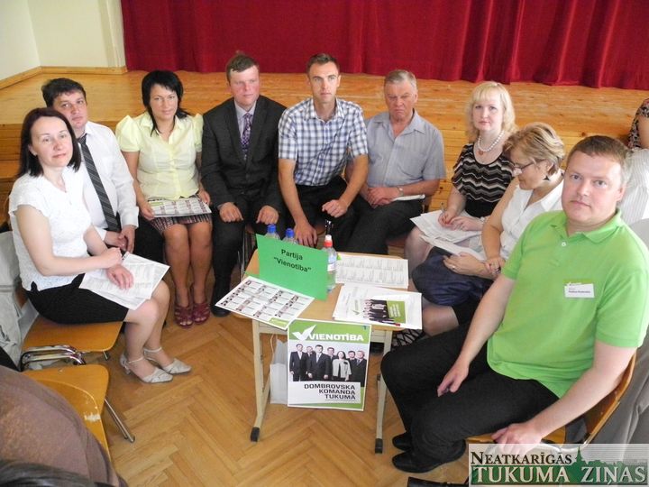 Partija «Vienotība» (V): Dace Lebeda, Tukuma kultūras nama direktore, Tukuma novada domes deputāte, partijas «Vienotība» Tukuma nodaļas vadītāja; Juris Bogužs, ārsts, SIA «Dobeles un apkārtnes slimnīca» valdes priekšsēdētājs, Tukuma novada domes deputāts; Artis Jomerts, zemnieku saimniecība «Jomas» īpašnieks, Tukuma novada domes deputāts; Raivis Nikolājevs, SIA «Telms» valdes priekšsēdētājs; Iveta Čivčiša, SIA «SBE Latvia LTD», SIA «Jūrmalas siltums» darba aizsardzības inženiere; Ilvars Auseklis, SIA «Ronis», SIA «SNLA» un biedrība «Sadzīves preču ražotāju asociācija» valdes loceklis; Liene Bēniņa, Tumes kultūras nama mākslinieciskās daļas vadītāja, Tukuma pilsētas modes deju studijas «Demo» vadītāja, biedrības «Mēs dejai» valdes priekšsēdētāja; Artjoms Grudcins, Tukuma E. Birznieka-Upīša 1. pamatskolas un Tukuma sporta skolas skolotājs; Gunta Neilande, biedrības «Latvijas Sarkanais Krusts» Tukuma komitejas izpilddirektore; Ilze Kļava, Valsts Ieņēmumu dienesta Nodokļu pārvaldes Jūrmalas klientu apkalpošanas centra galvenā nodokļu inspektore; Mārtiņš Priede, Tukuma 2. pamatskolas skolotājs; Ivonna Bredovska, Slampes kultūras pils direktore, režisore; Ričards Černovs, bezdarbnieks; Zigfrīds Freimanis, SIA «Ansis» valdes loceklis, ceļojumu un orientēšanās kluba «Silva» valdes priekšsēdētājs; Rigonda Āboliņa, Valsts Ieņēmumu dienesta Pirmās nodokļu strīdu izskatīšanas daļas galvenā nodokļu inspektore; Aija Ektermane, Džūkstes pagasta kultūras nama direktore; Romualds Stankevičs, piemājas saimniecības «Šūļas» īpašnieks; Anita Zēne, Sēmes tautas nama un Zentenes kultūras nama direktore, biedrības «Zentenes izaugsme» valdes priekšsēdētāja; Māris Rudaus-Rudovskis, Tukuma novada domes izpilddirektors.