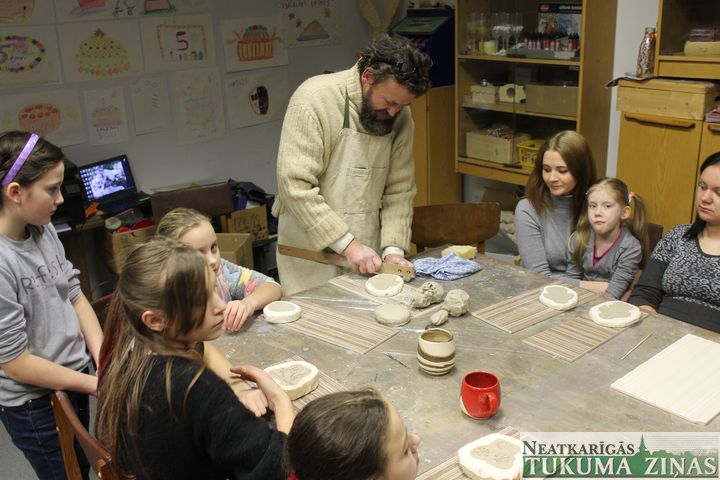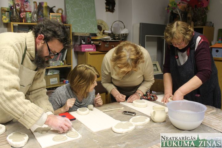 Tukuma radošo personību klubiņā «Ligzda» 26. februārī sākušās keramikas nodarbības keramiķa Ulda Daiņa vadībā, jo te realizētajam projektam «Atšifrējums Tukumā» iegūts Borisa un Ināras Teterevu fonda finansiālais atbalsts, par ko jau nopirkta māla virpa un keramikas apdedzināšanas krāsns.