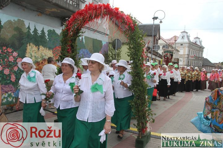Floristi visā pilsētā veidoja goda vārtus, savu dejas prasmi rādīja senioru deju kolektīvi no visas Latvijas, tika godināti astoņi laulātie pāri, kas sadzīvojuši rožu gadus.