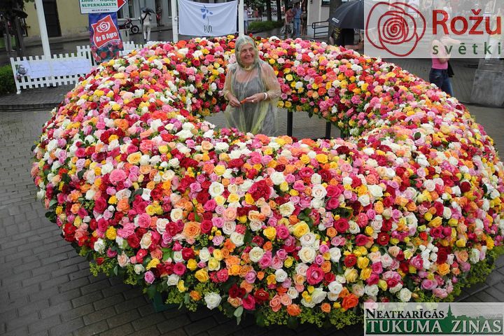 Rožu vainags- skaisti. Tikai rozes pie tā - Spilves majonēžu spaiņos. Un tas vairs nav ne skaisti, ne estētiski. Vai tad Tukumā puķu trauku trūkst?...