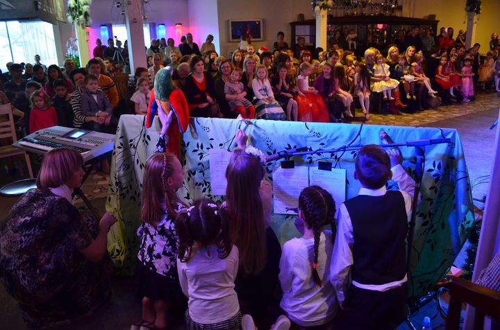 Lai Zaķēnam Tomam nebūtu vienam jātiek galā ar vakara vadītāja un balles organizētāja pienākumiem, viņam palīgā nāca gan bērni paši, dziesmu starplaikos spēlējot leļļu teātri, gan arī vecāki, kuri bija ieradušies noskatīt „to īsto” svētku egli, kurai paņemt GPS koordinātas. Citādi taču nākamajā dienā to starp visām citām eglēm mežā vairs neatrast!