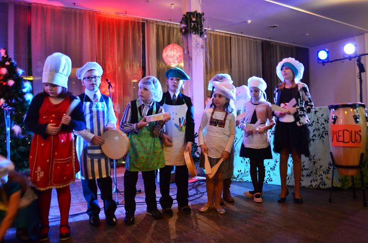 Tieši tā 13. decembra priekšpusdienā izskanēja ielūgums uz svētku ballīti Ledus hallē, kurā bija ieradušies gan mazuļi kopā ar mammām, gan jau lielāki bērni, ģērbušies krāšņos tērpos un, protams, pats zaķēns Toms, kurš diriģēja visu parādi. Bija pienācis laiks Skaņu skolas «DORE» Ziemassvētkiem.